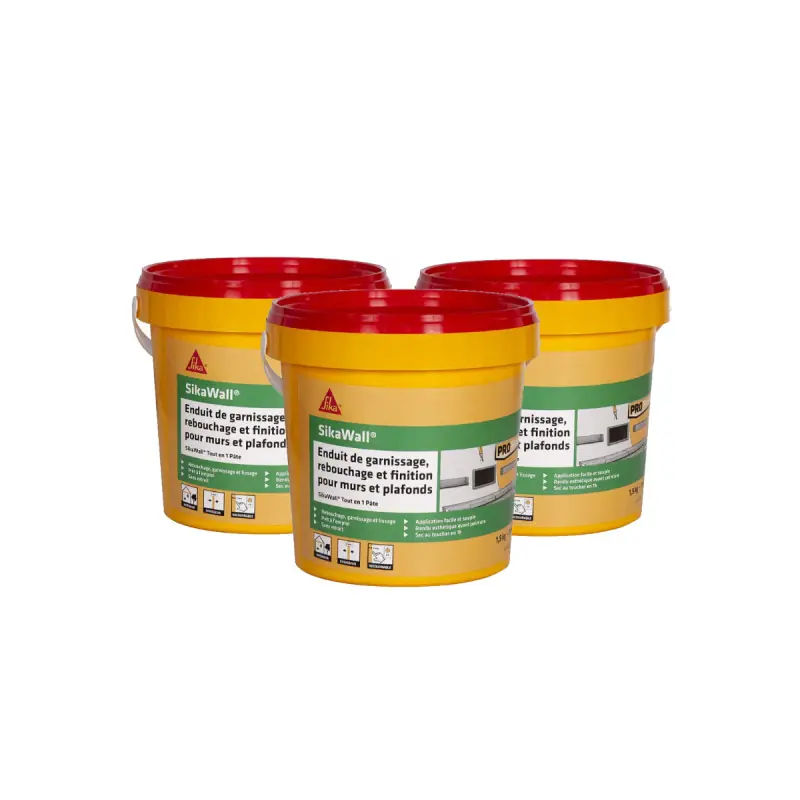 Pack of 3 SIKA SikaWall all-in-one filling compounds - 1.5kg ready to use, this product is ideal for filling, smoothing, and finishing your wall before painting or applying wall coverings. To be used for filling, patching, smoothing, and finishing irregular surfaces in concrete, cement-based plaster, cellular concrete, bricks, stones, blocks, plaster-based coatings, plasterboard, plaster tiles, glass fibre, rendering, wood, and tiling.