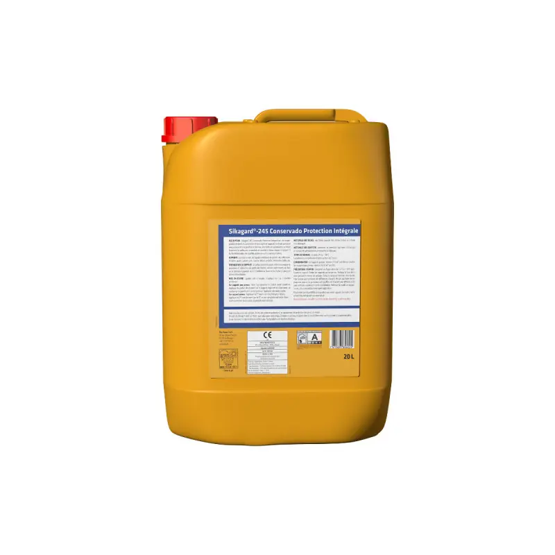 The SIKA Sikagard-245 Conservado Integral Protection - 20L is a ready-to-use impregnation product designed to protect all porous or slightly porous mineral substrates against the penetration of water-based liquids and oils. It prevents or significantly reduces stains and the soiling of materials. The protection does not create a film on the surface and is therefore completely invisible. It also facilitates the cleaning of graffiti, which must, however, be removed using appropriate cleaners. The product can be used on façades, roofs, and floors.