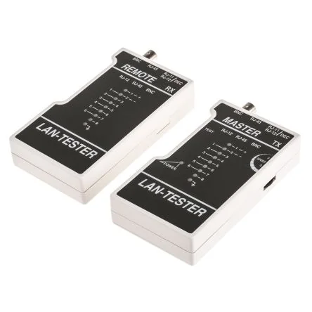 Silfox SFXB Network Cable Tester. Featuring a master and remote unit able to test lengths of up to 300 meters, this LAN cable tester is compact and an ideal portable handheld tester. Designed for testing open shorted, crossed, reversed, transpose, split and non-pair wiring, it also has the ability to test grounding. Used for RJ45, RJ25/Shielded, RJ45/Keyed, RJ12, RJ12/DEC, RJ11 and BNC. Both units come with a small zip locking PVC pouch for protection, along with a spare battery and 2 x 6 to 4 inserts. Features and Benefits:. • 1.4A current rating • Withstand voltage 1000V AC/Minute • -40°C to 70 °C operating temperature. Frequently asked questions:. What is a LAN cable tester? LAN testers are devices that allow a user to verify and test a connection or signal within a data cable (also known as LAN cables or high speed data cables). The types of tests include whether the cable is set up correctly, connected, the strength or speed of the signal being sent through the cable. What is the difference between RJ45 ; RJ11? RJ45 is an 8-pin connector whereas RJ11 is only a 4 wire connector. RJ45 is used in Ethernet connections to connect computers to networks. RJ11 is more of a conventional telephone wire used to bring fibre into your house. RJ is the abbreviation of ‘registered jack ‘.