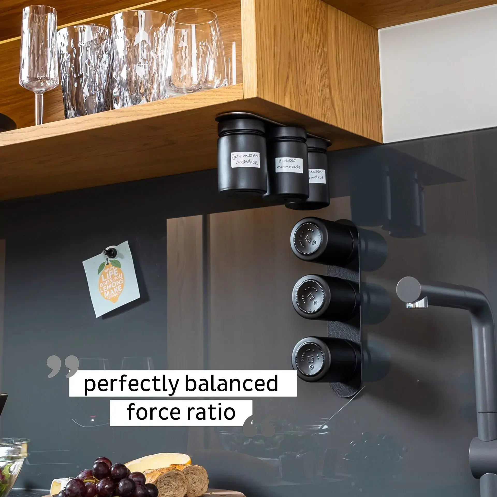 Stylish black glasses with magnetic lids for convenient and space-saving storage of delicacies.