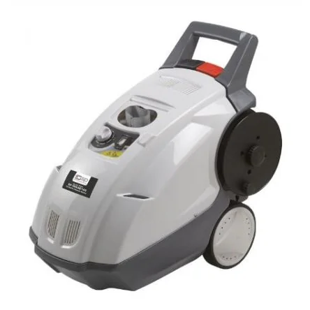 Powerful hot water pressure washer with 150bar pressure and 540L/h flow rate for efficient cleaning.