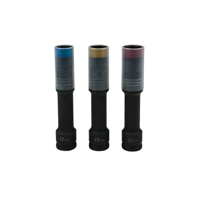 With this set, you benefit from considerable time savings when changing wheels or maintaining your vehicle. The impact sockets are specially designed to transmit torque effectively, ensuring quick and effortless unscrewing. Whether you are a professional in the automotive field or an individual concerned about maintaining their vehicle, this set will meet your expectations in terms of performance and reliability.