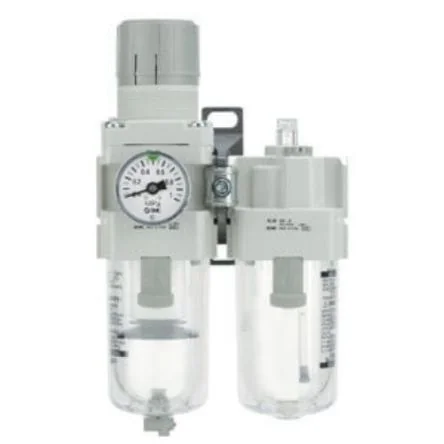 SMC 1/4 in, 1/8 in Filter Regulator Lubricator, Automatic Drain, 5µm Filtration Size - With Pressure Gauge - AC20A-F01G-A