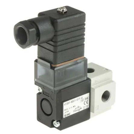VT307 Series Direct-Acting Solenoid Valve. SMC have updated their EVT307 valve range with the new VT307 series. These new direct acting solenoid valves offer reduced power consumption over existing models and are available with both vacuum and energy-saving versions. Available with voltage surge suppression. Suitable for a diverse range of applications including Blow-of valves, Pressure release valves, single acting cylinder drives, Divider valves and double acting cylinder drives. Body ported Interchangeable with existing range Universal porting type Available with DIN 43650 connector with IP65 protection Dust-proof enclosure Unrestricted mounting orientation Non-locking push type manual override Various functions: N/O, N/C, Divider valve, Selector valve Available with voltage surge suppression Easily converted from N/C to N/O by inverting function plate