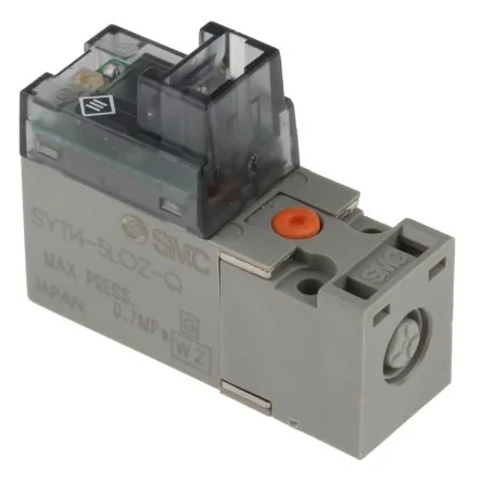 SMC Solenoid ValveThe SMC SY100 series 3/2 port direct-operated solenoid valve has operating pressure ranging between 0MPa and 0.7MPa. Its solenoid voltage is 24VDC with a low power consumption of 0.5W. This valve has a maximum flow rate of 7.85NL/min with operating temperatures up to 500C.Features and BenefitsAdaptor lead available to connect SY100 valve to existing VJ100 plug Indicator light and surge voltage suppressor Mounts on same sub-bases as VJ100 range Non-locking manual override Normally closed valve configuration Suitable for pressure or vacuum applications