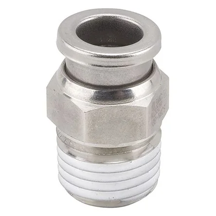 Male Connector - KQG2 Series. SMC ‘s KQG2 stainless steel range provides engineers with a choice of high performance, lightweight, compact push in fittings for when resistance to corrosion, chemicals and high temperatures is vital. 30% smaller and 62% lighter than the existing KQG range and available to tubing diameters from 3.2 to 16mm. Suitable for use with compressed air, water, steam and able to perform across a diverse range of pressure (-100kPa to 1MPa) and temperature conditions (-5°C to +150°C).