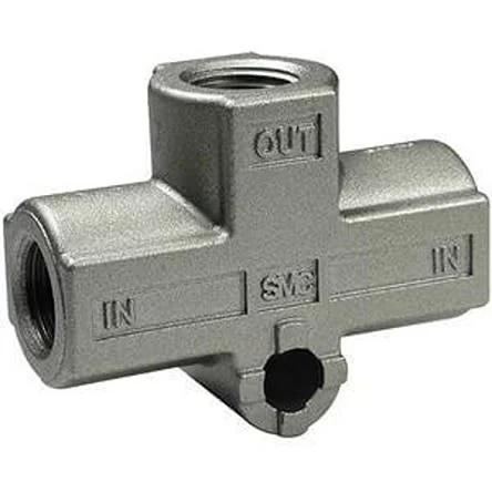 Reliable SMC pneumatic shuttle valve with Rc 1/8 threaded connection and 10 bar max pressure.