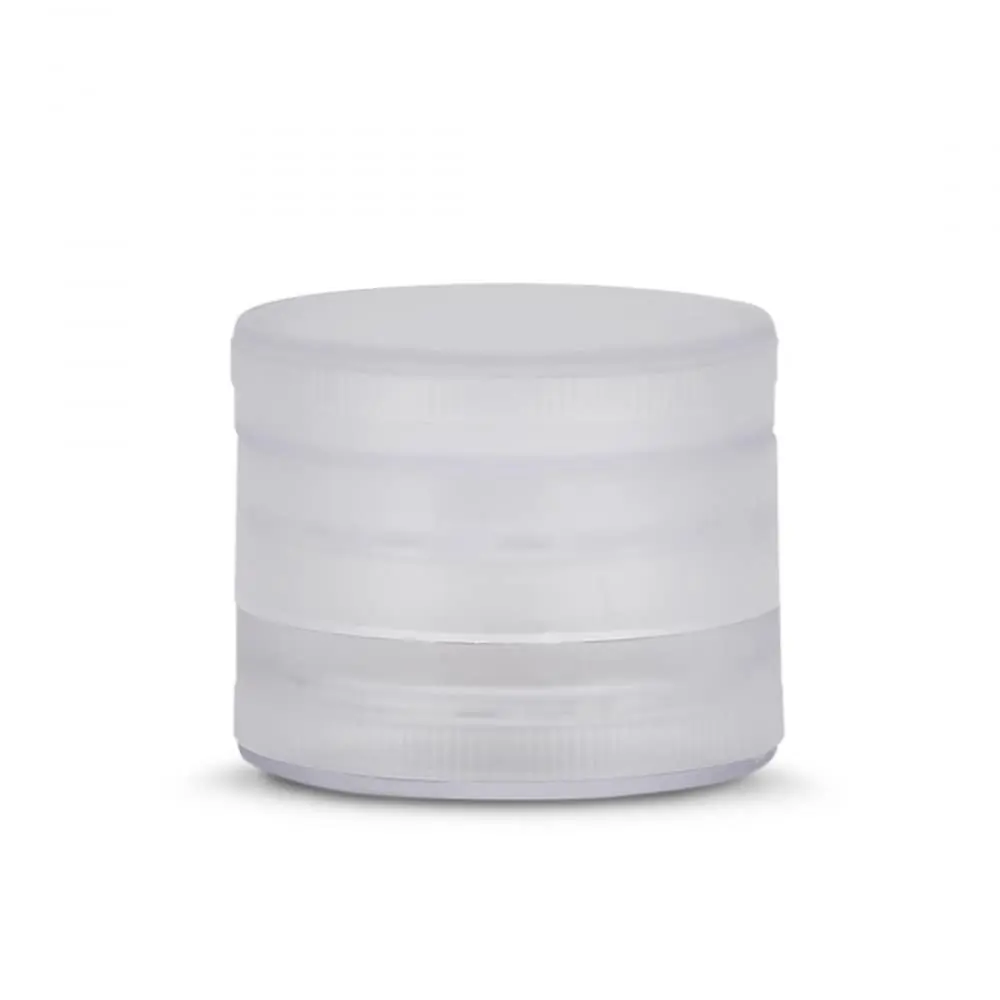 cheap 5-part white plastic grinder. composed of 5 parts with sieve and collection base.. diamond-shaped teeth.. colour: white