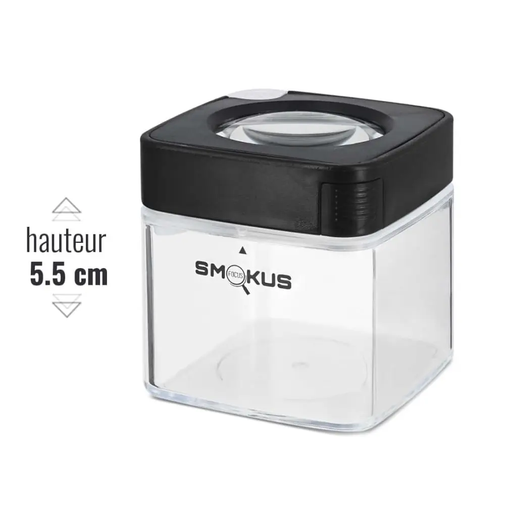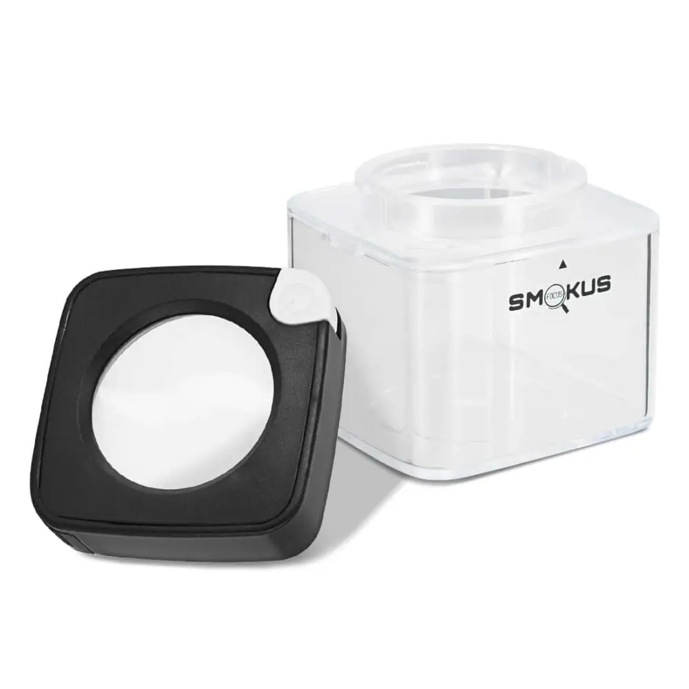 the led airtight storage box with magnifying glass is ideal for storing your flowers tobacco herbs or small objects. with its integrated led lighting and 5x magnifying lens it allows a detailed view of its contents. powered by 3 lr927 batteries (included) it has a secure latch and an on/off button.
