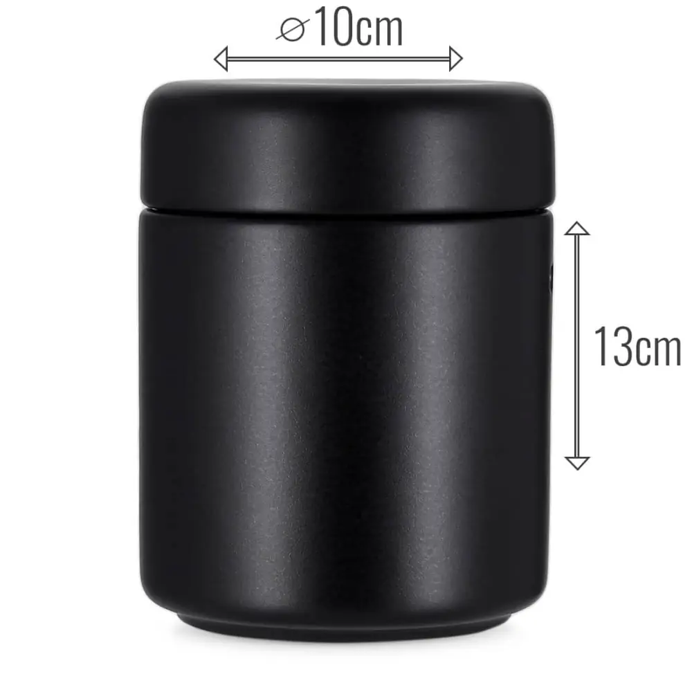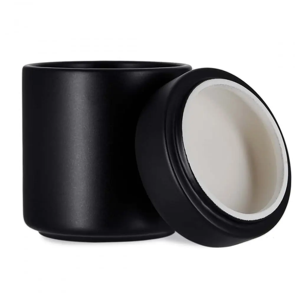 medium capacity black ceramic tobacco jar.