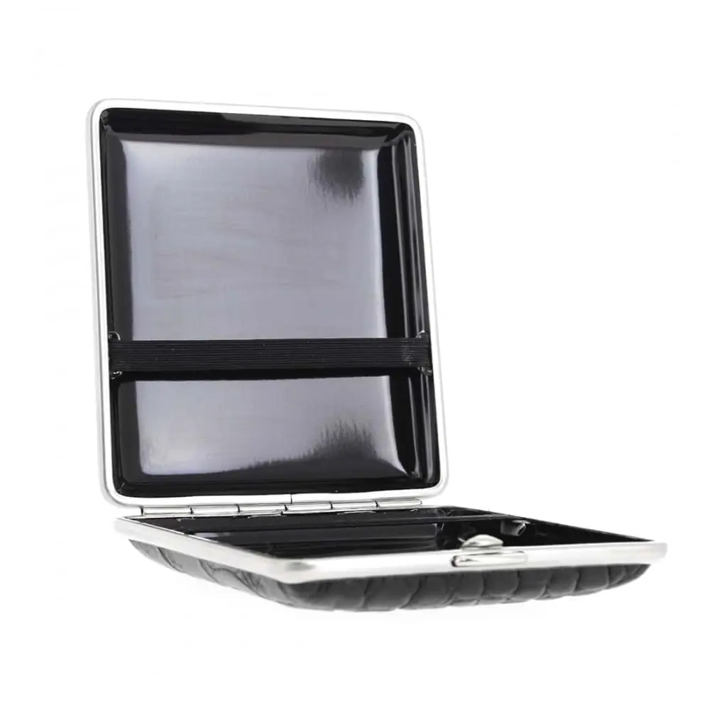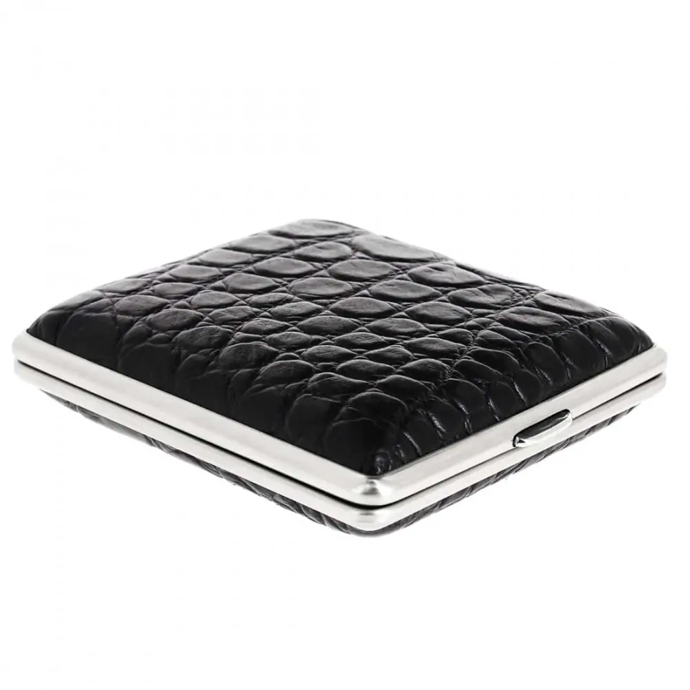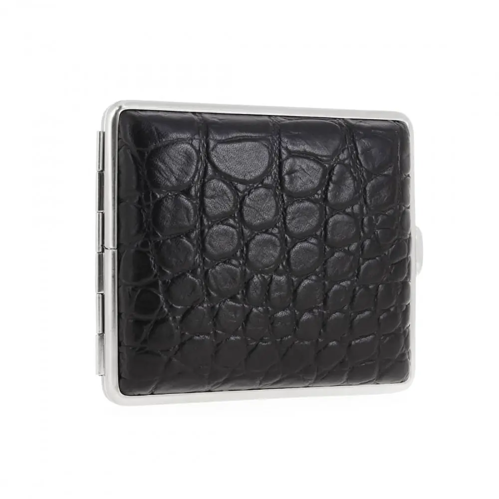 Stylish black croco leather cigarette case holds up to 18 cigarettes securely.