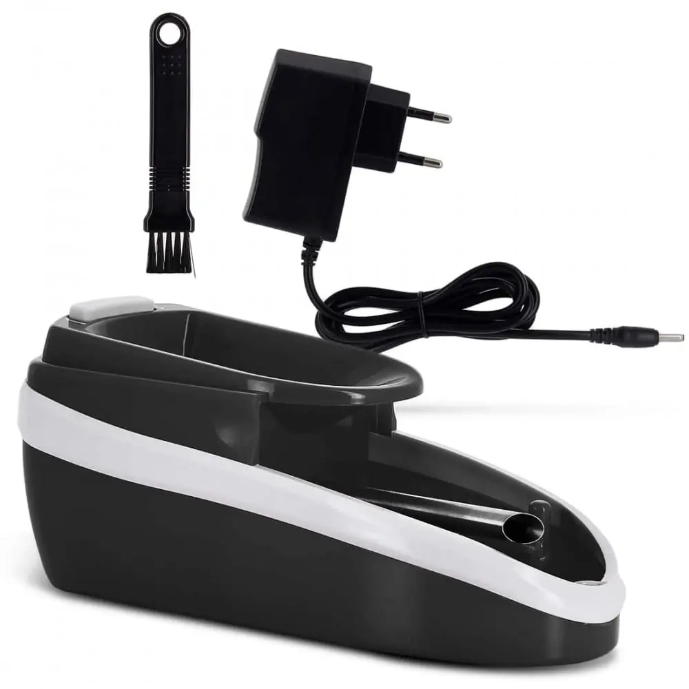black mini filling tubing machine. easy to use this robust and fast electric mini tuber machine is equipped with a forward and reverse system that will allow you not to clog your tube in order to obtain a perfect result with each tube.