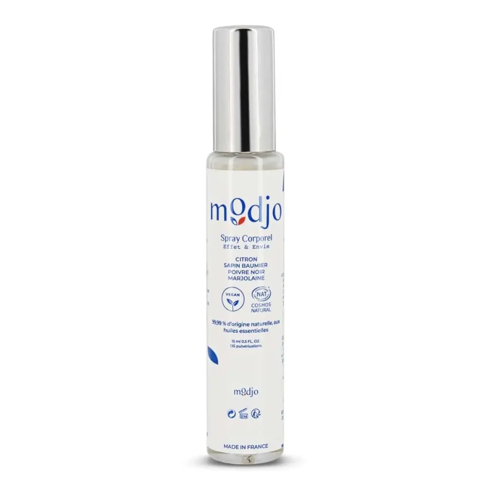 Modjo anti-odor body spray 15 ml is a practical solution to neutralize cold tobacco odors on clothes, hair, and skin. Composed of natural essential oils, it ensures freshness and soothing in a single gesture.