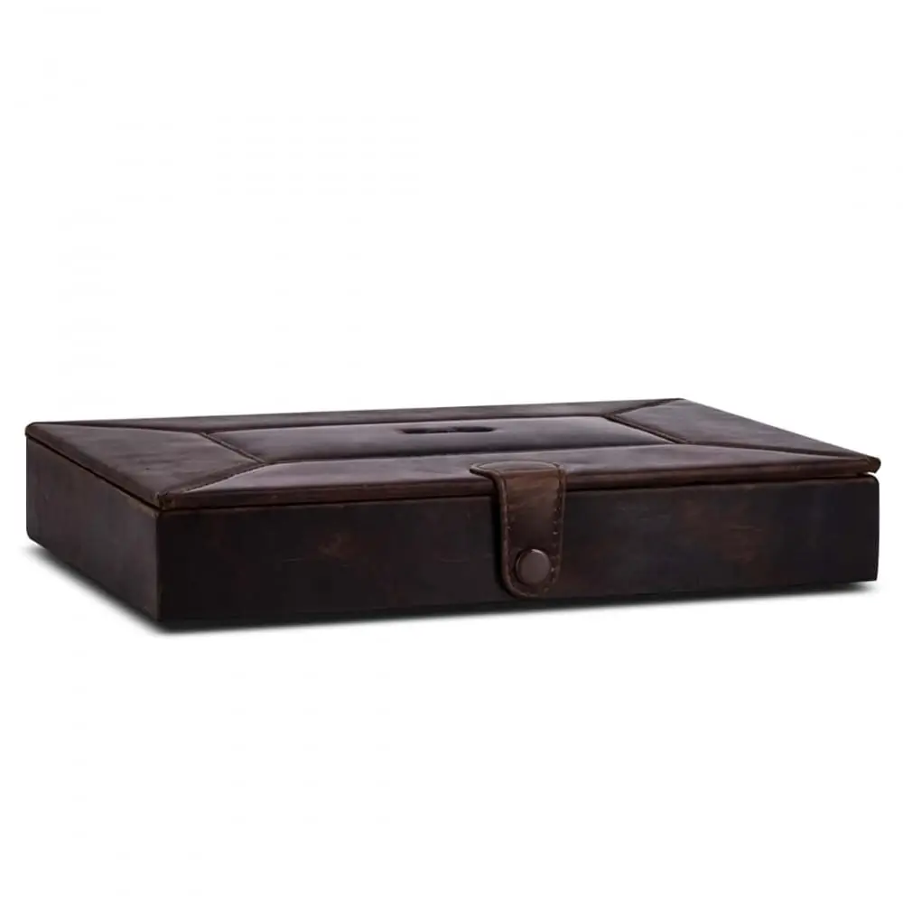 - cigar box in brown leather with a foam humidification system that can hold up to 15 cigars