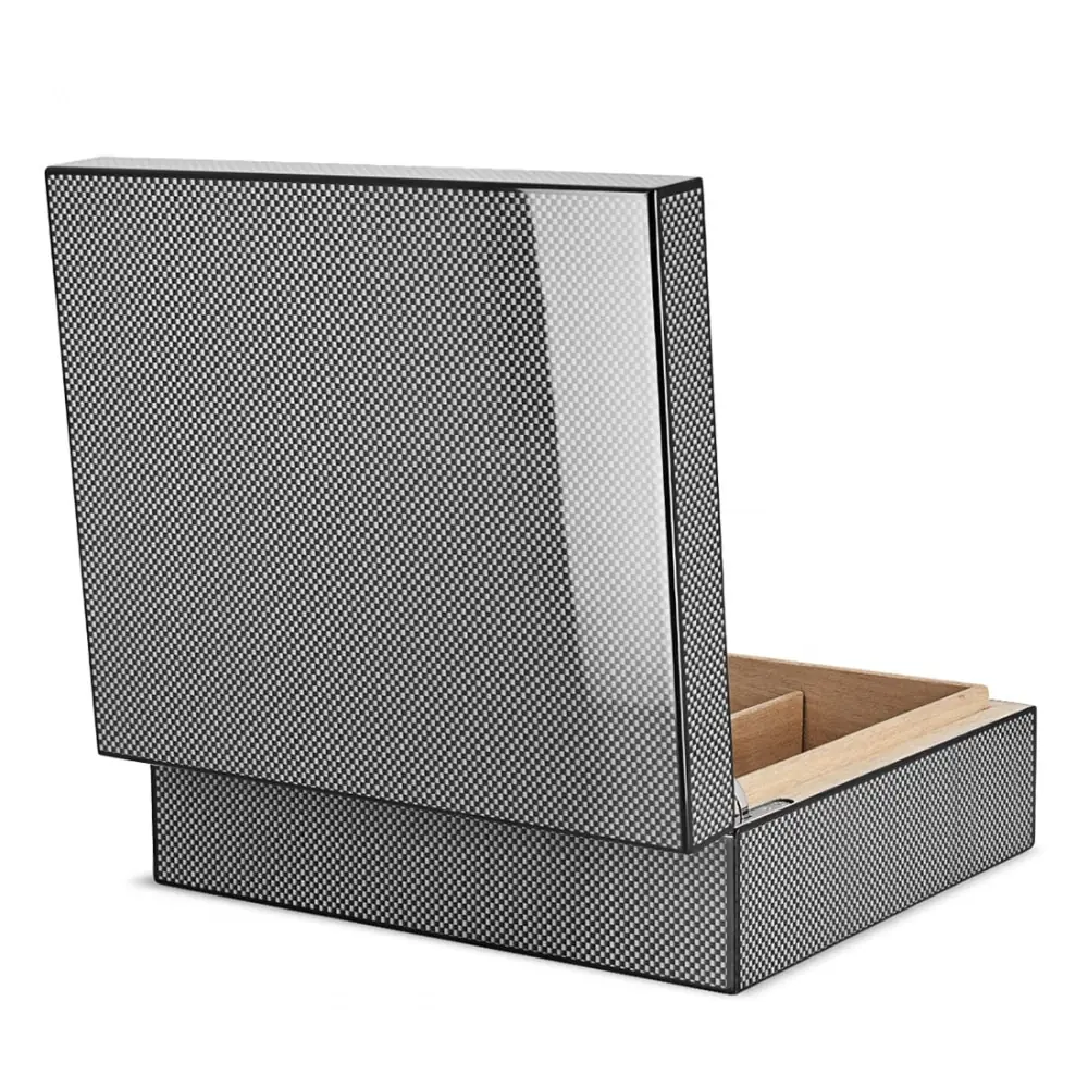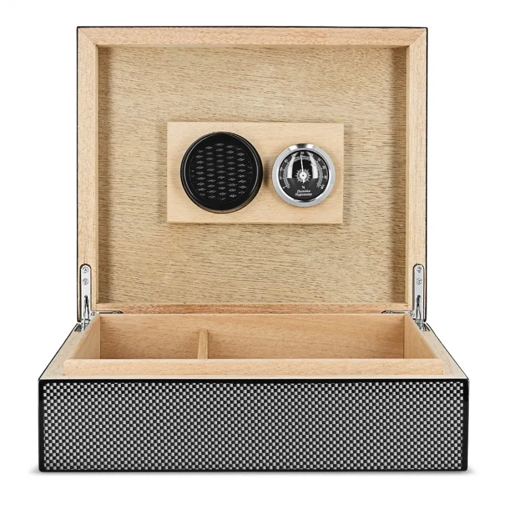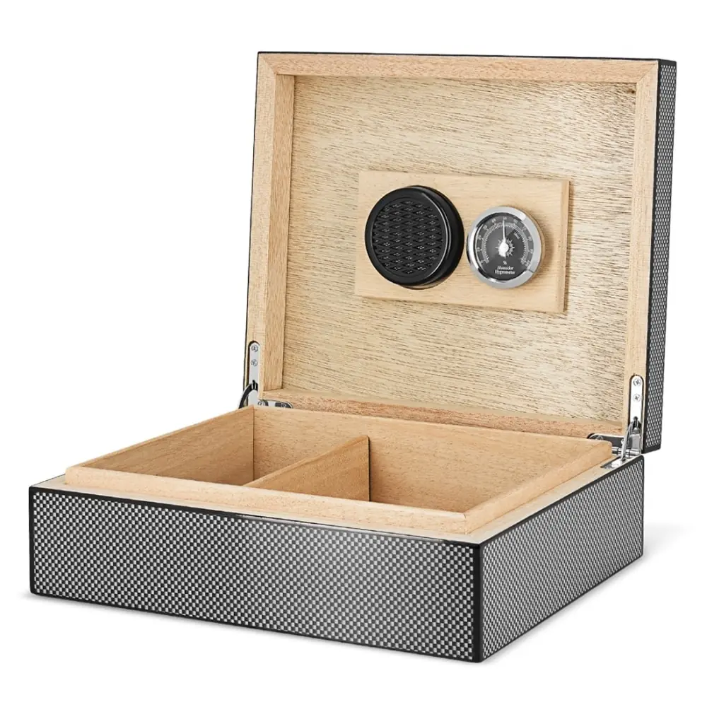 Store up to 30 cigars in this stylish carbon humidor, designed for optimal freshness.