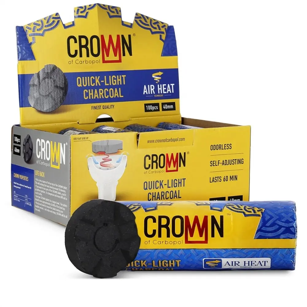 Enjoy smooth and consistent smoking with Smoking's Carbopol Crown Hookah Charcoal, featuring 10 rolls of premium coals.