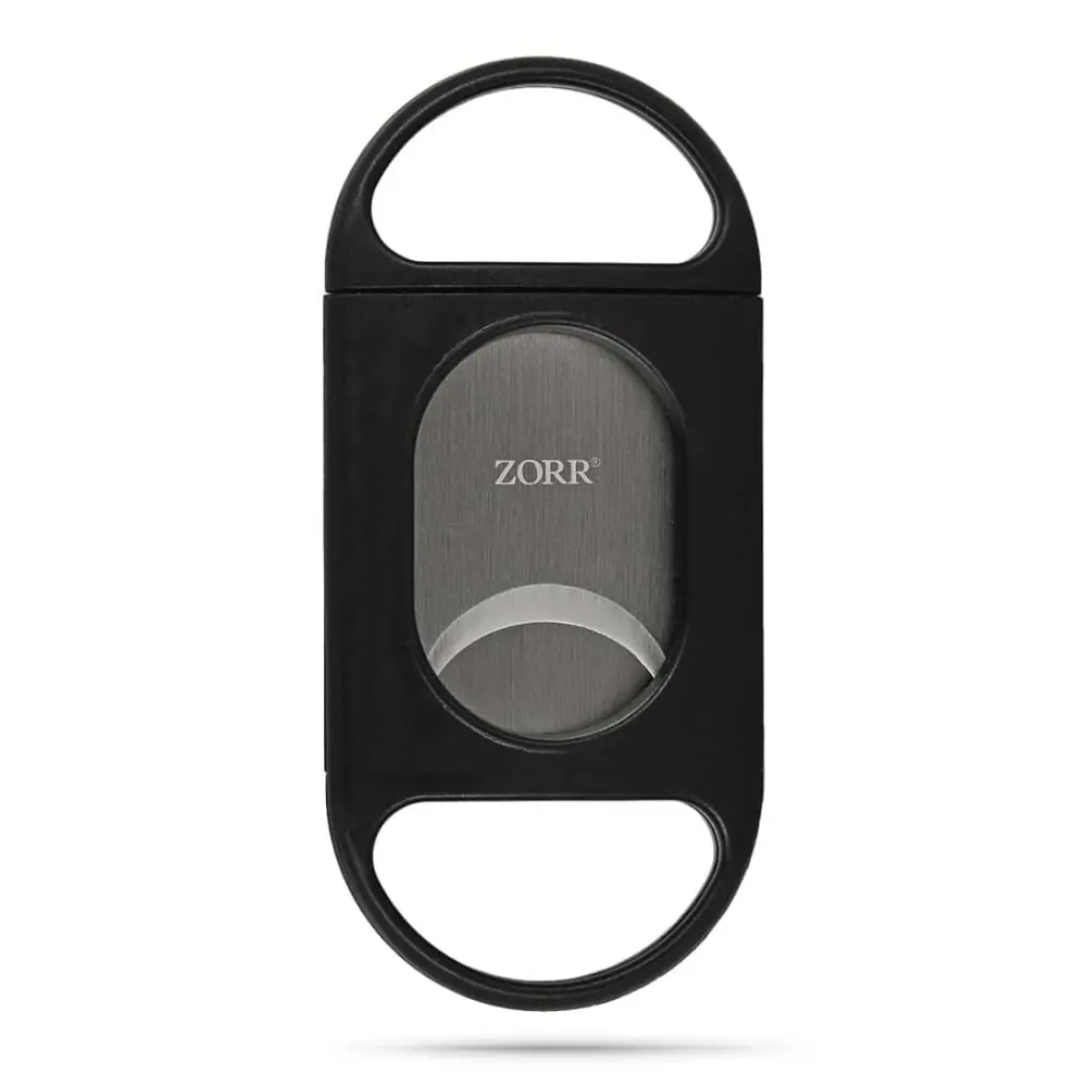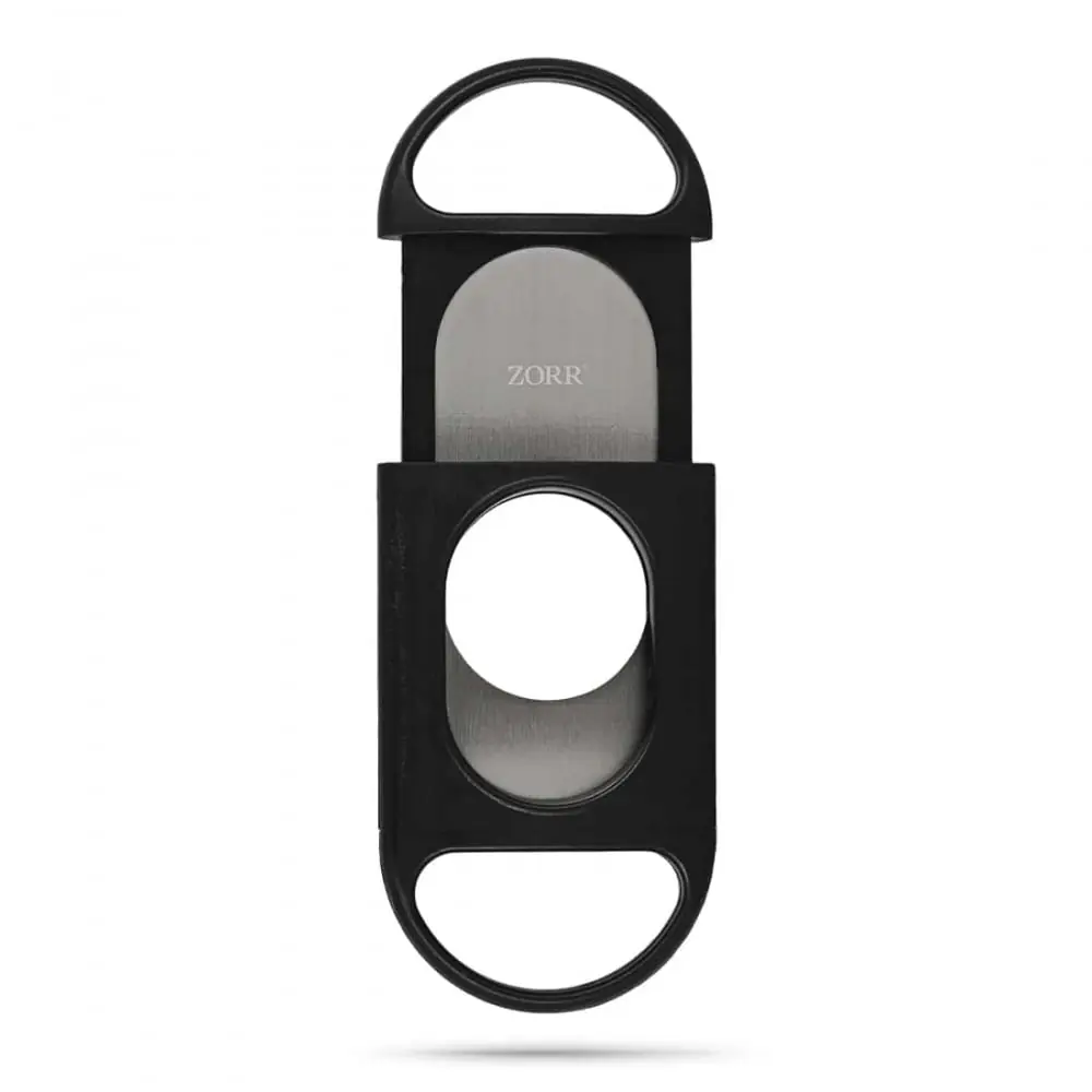 Cheap cigar cutter with a fixed blade and a removable blade with manual opening and closing.