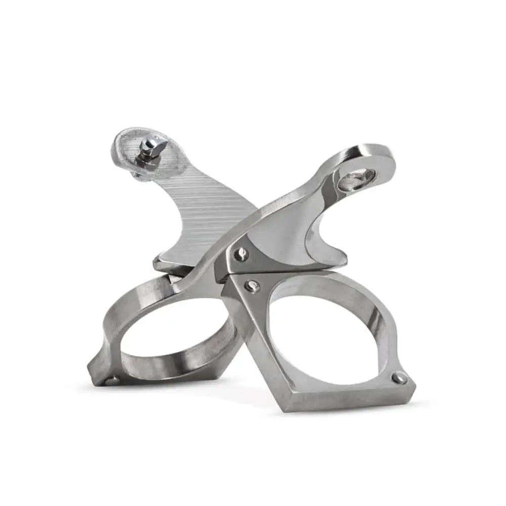Steel cigar cutter which also serves as a cigar rest once transformed. Manual opening and closing. Clean and precise cut. Opens and turns into a cigar rest.