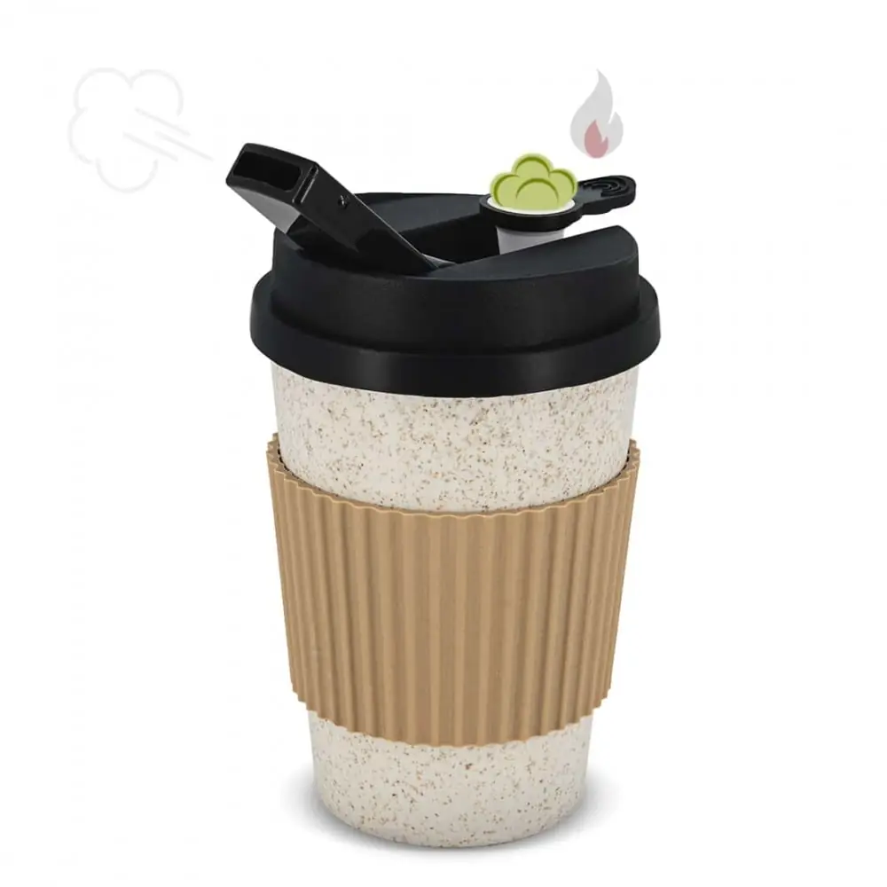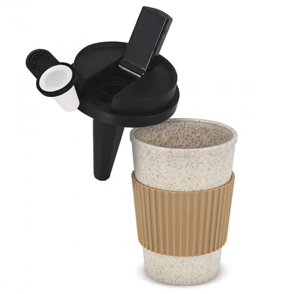 a water pipe in the shape of a coffee cup not only biodegradable but also functional as a storage container. with its dimensions of 14 cm in height and 9 cm in diameter it offers an original design.