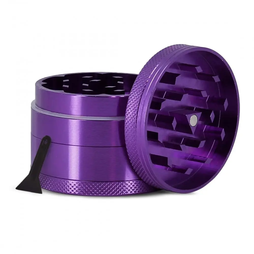 magnetic grinder with 50 mm purple filter. magnetic lid. diamond blades. 2 drip tray. a sieve filter. a plastic squeegee