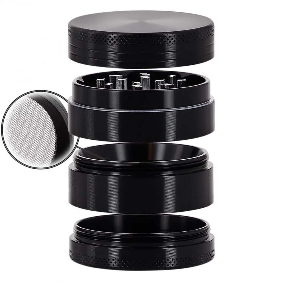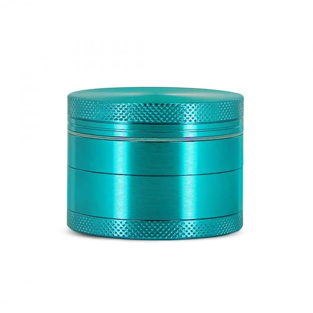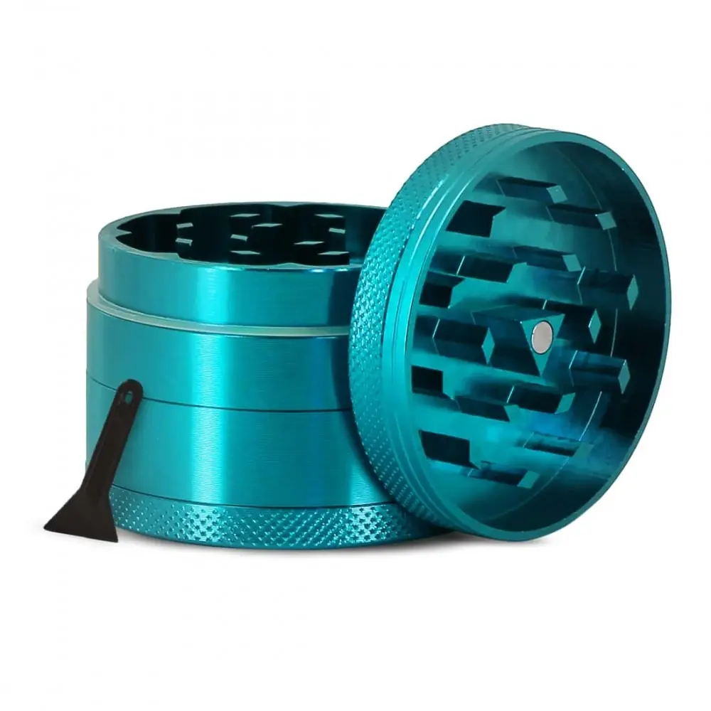 this beautiful 4-part deluxe aluminum magnetic grinder with a diameter of 50mm and turquoise blue color will be the perfect compromise to grind crumble and refine your tobacco or spices. it has sharp diamond-shaped teeth a filter screen and a collection tray.