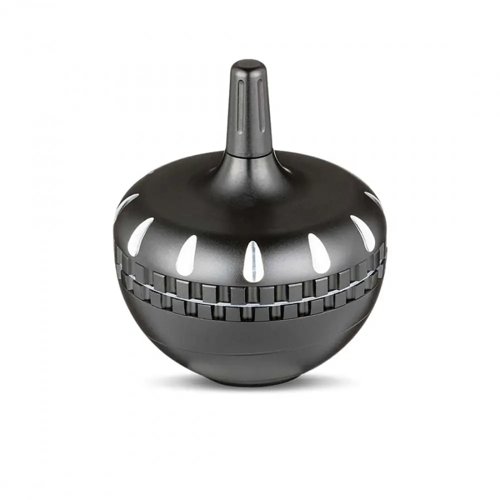 the grinder in matte black aluminum a multifunctional object that serves as an anti-stress spinning top. a practical accessory for grinding herbs and relaxing the mind. compact and elegant.