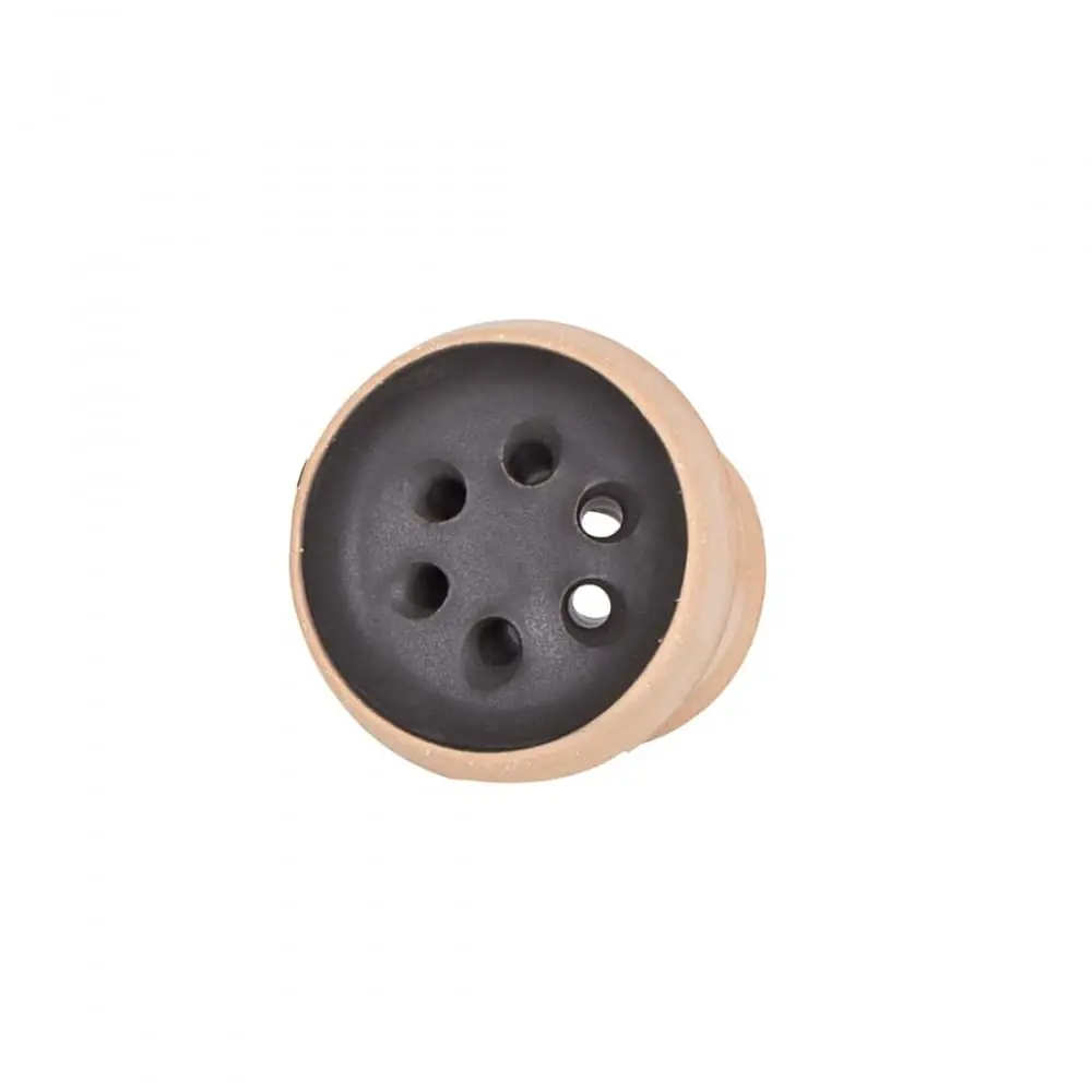 Small and fairly flat shisha hearth with 6 holes and coating for good heat distribution. Black interior color. Matter: clay stone.