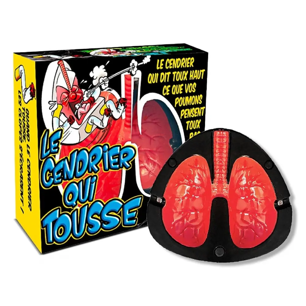 the poumons sonore ashtray is the perfect accessory for those who want to add a humorous touch to their cigarette breaks. featuring a creative design this black ashtray takes the shape of red lungs embedded in the structure creating a striking visual effect. this unique ashtray features three holes designed to accommodate your cigarettes adding practical functionality to its playful nature. what particularly sets it apart is its humorous touch: it coughs when you put your cigarettes in it!