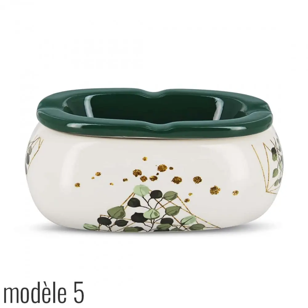 Pretty oval ashtray entirely in white and green ceramic with plant motifs model n°5. Collection tray with a dome to prevent bad odors and lid with 4 notches for cigarettes.