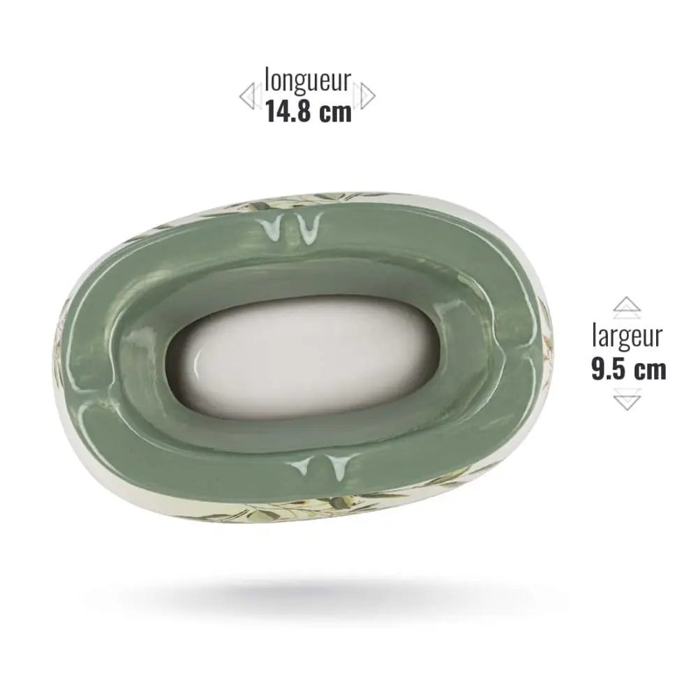 - Specificities: Oval ceramic ashtray white and green plant model 5 entirely in ceramic