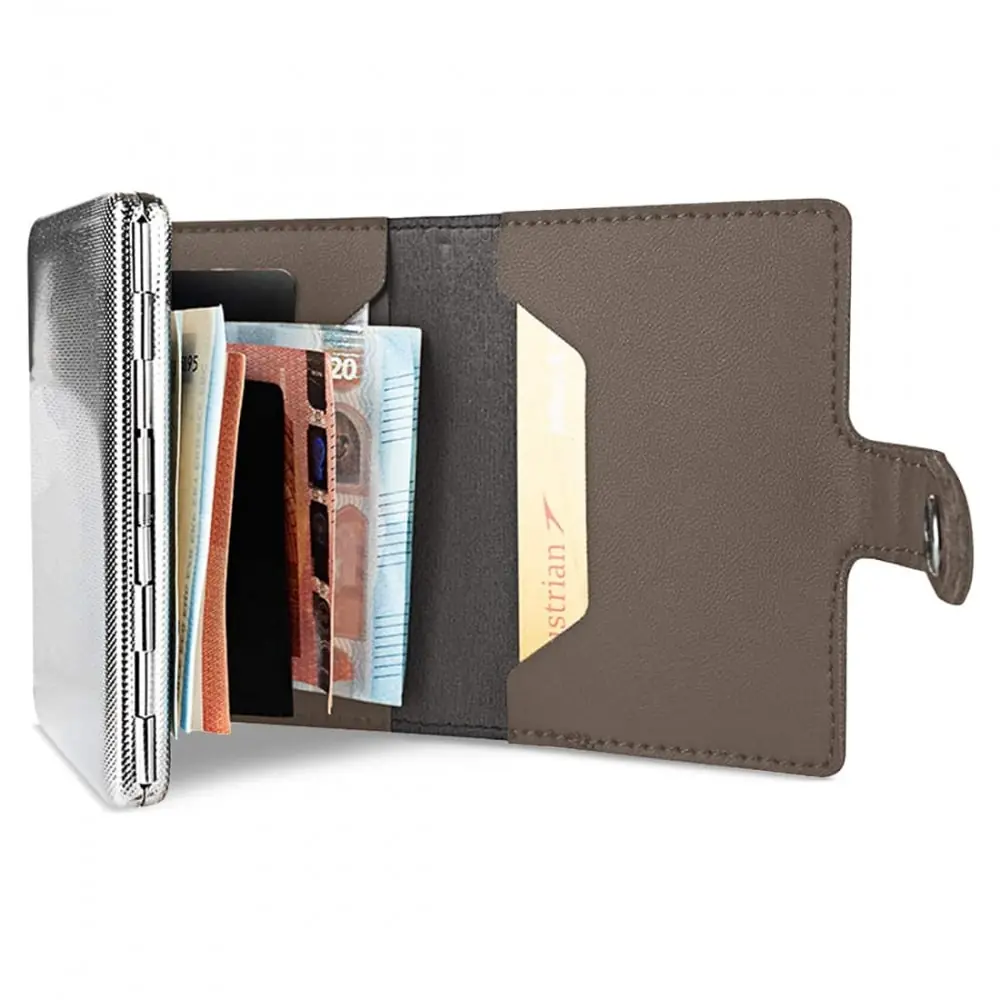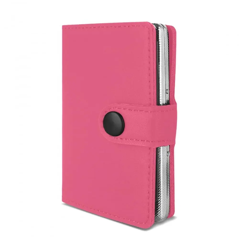 the pink card holder cigarette case combines functionality and elegance with its refined pink faux leather exterior and metal interior. this 2-in-1 accessory protects your cigarettes and cards.