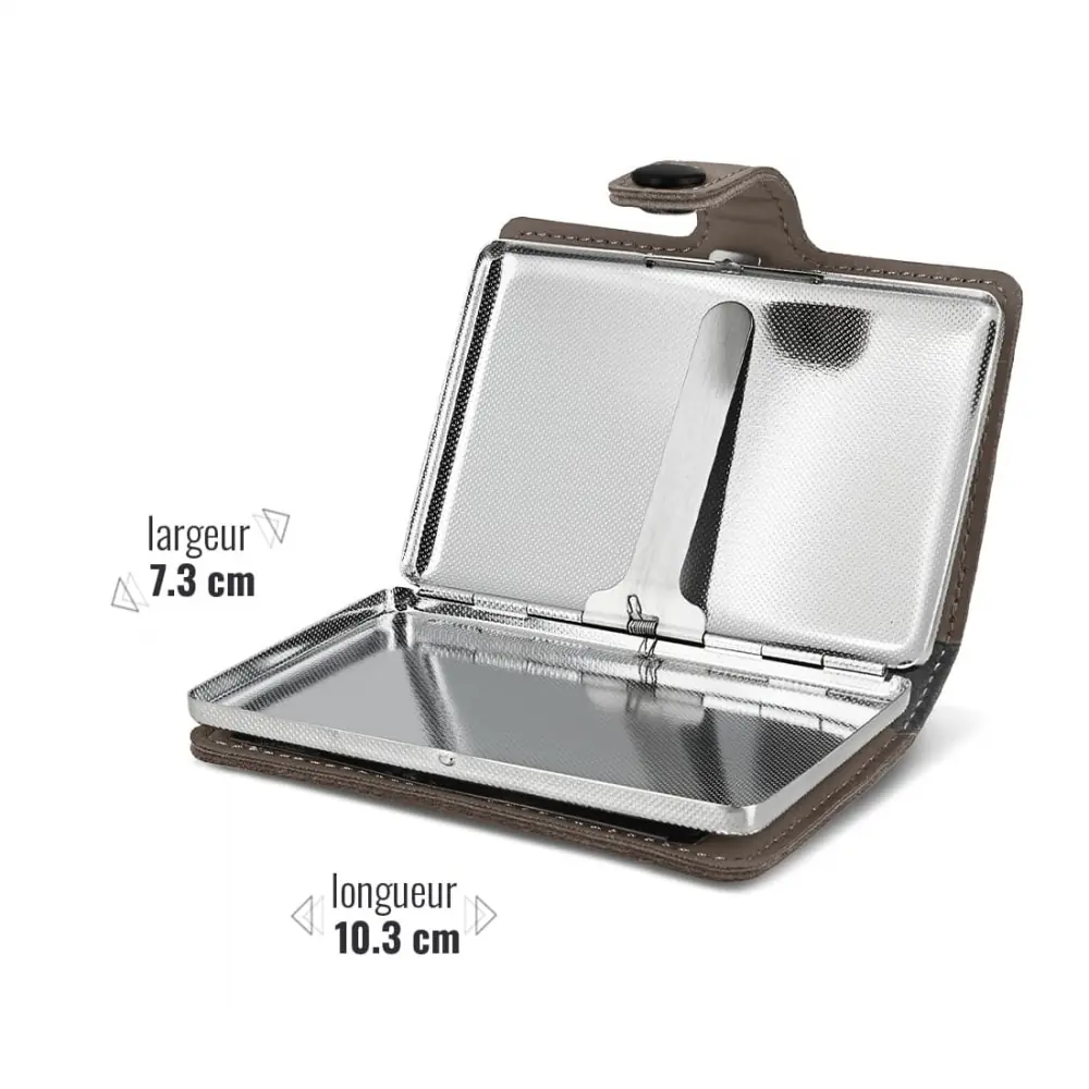 - 1 spring-loaded retaining tab to hold cigarettes in the case