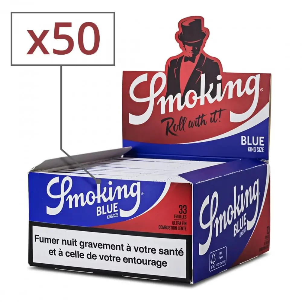 Smoking slim blue rolling paper box of 50 books of 33 superior quality rolling papers.