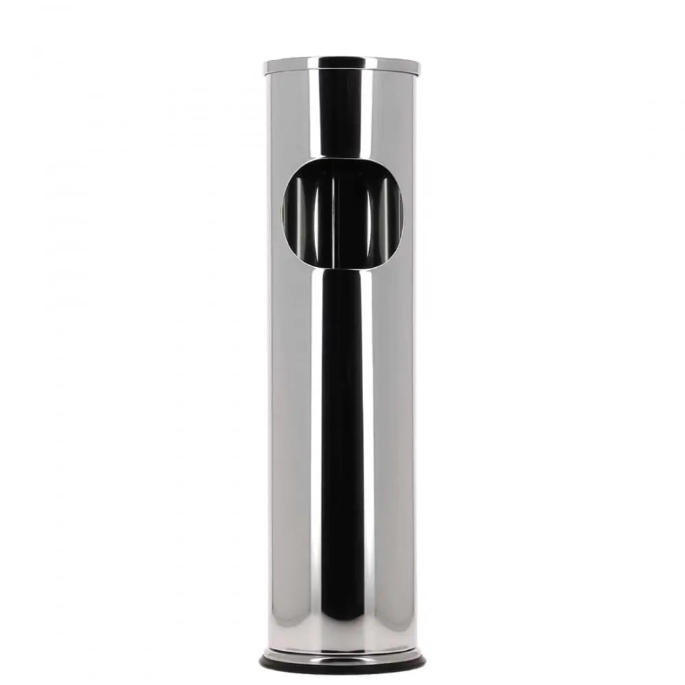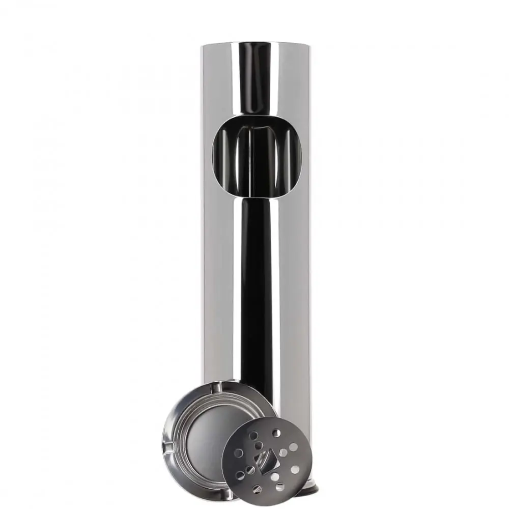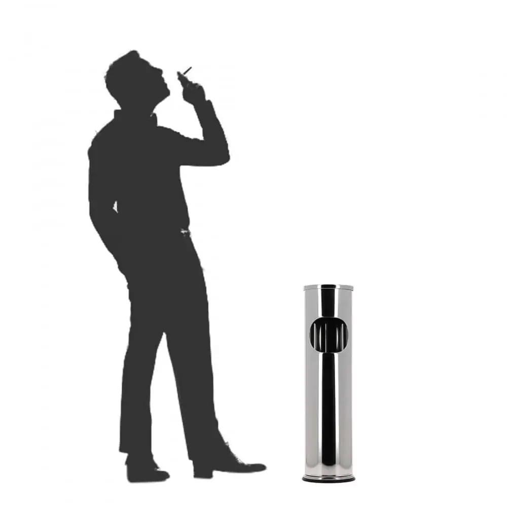 Standing ashtray and slim silver bin. Cylindrical ashtray with lid. Contain the smoke. Large capacity of butts. With 4 cigarette slots.