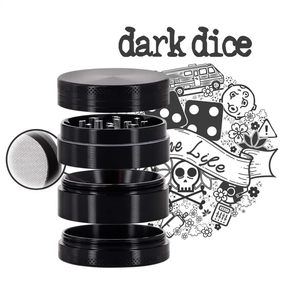 - A dark dice alu grinder 4 parts 40 mm (colors may vary depending on arrivals)