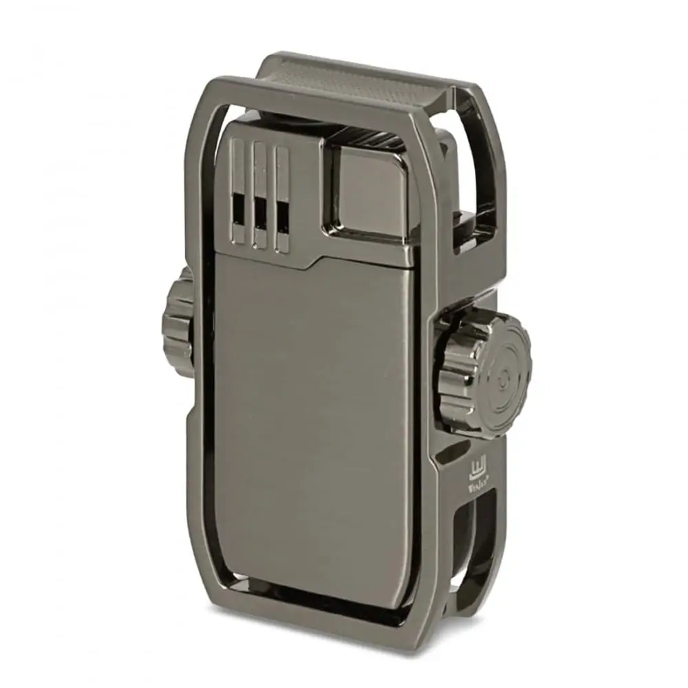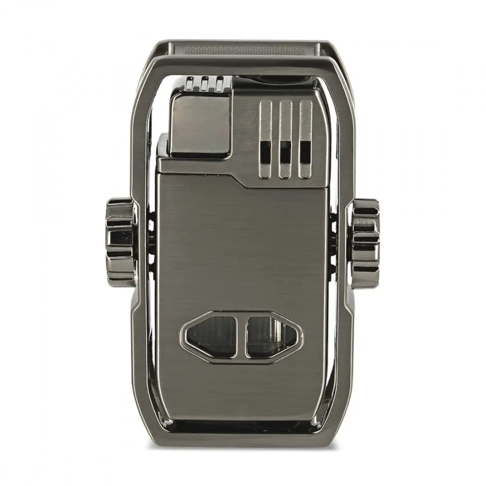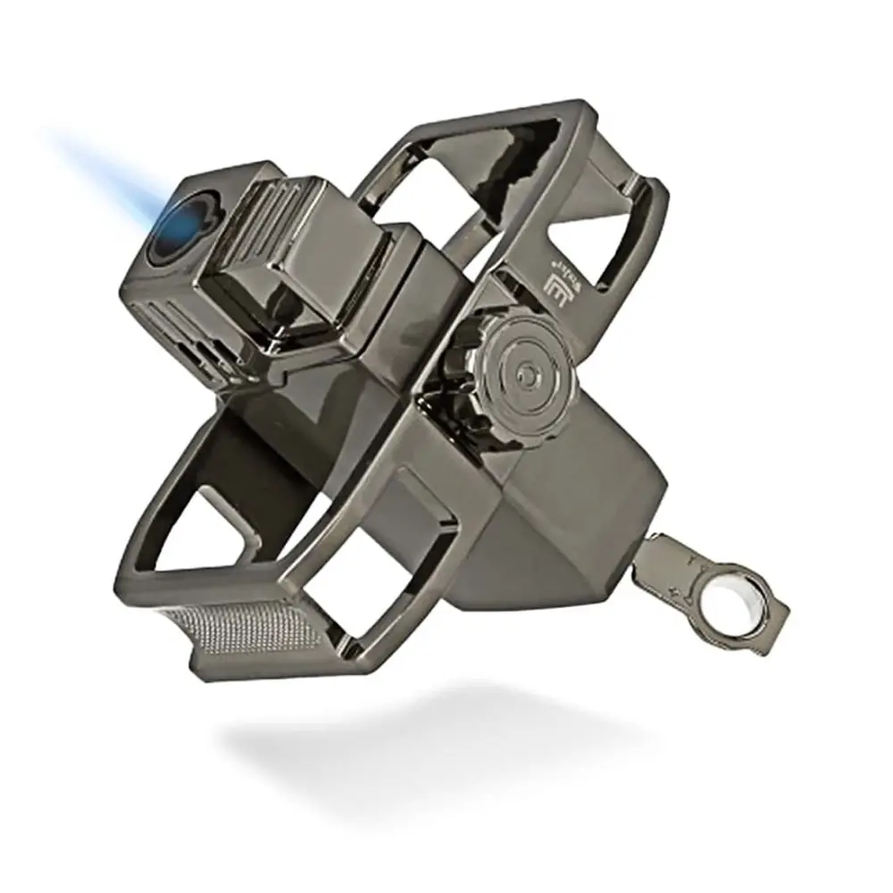 the storm spinner gun cigar rest lighter is a sturdy and practical accessory perfect for cigar lovers. with its vertical ignition and integrated cigar rest it offers a powerful wind-resistant flame and a durable metal design.