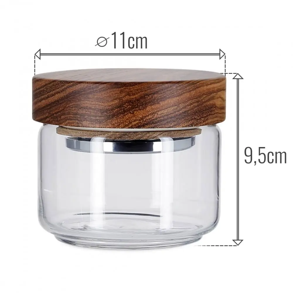 small glass and wood tobacco jar.. the lid has a magnetic humidifier underneath for perfect humidification of the tobacco..