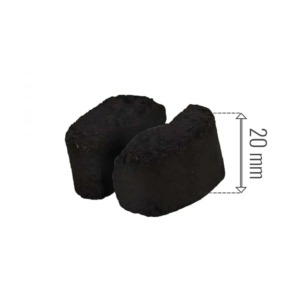 two-part shisha charcoal perfect for installing in a heating system. 100% natural charcoal without chemicals with long burning time. box of 1 kg.