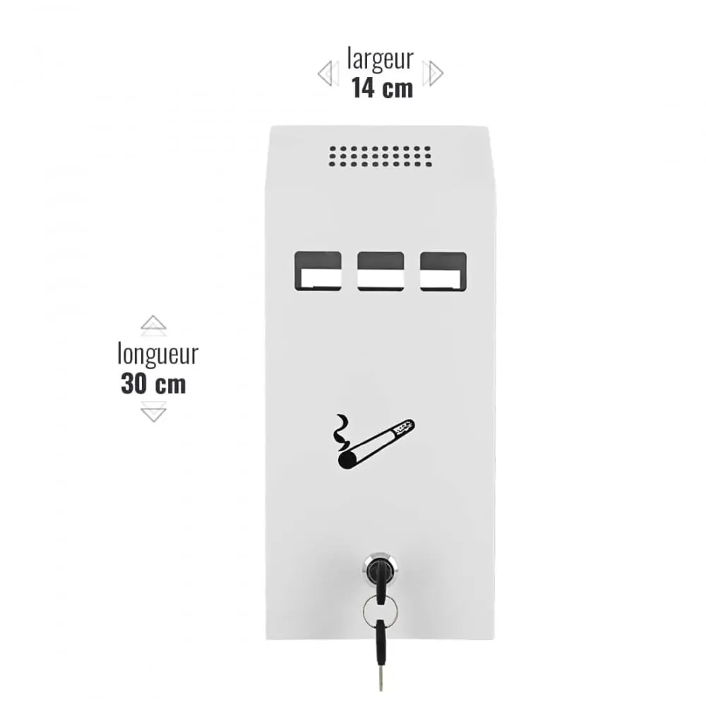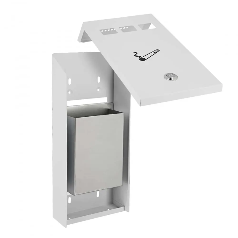 ashtray to attach to a wall. it is perfect for public spaces businesses or smoking areas. in white metal. lockable delivered with a set of 2 keys. material metal color white presentation this wall ashtray will be delivered to you in its original packaging carefully packaged.