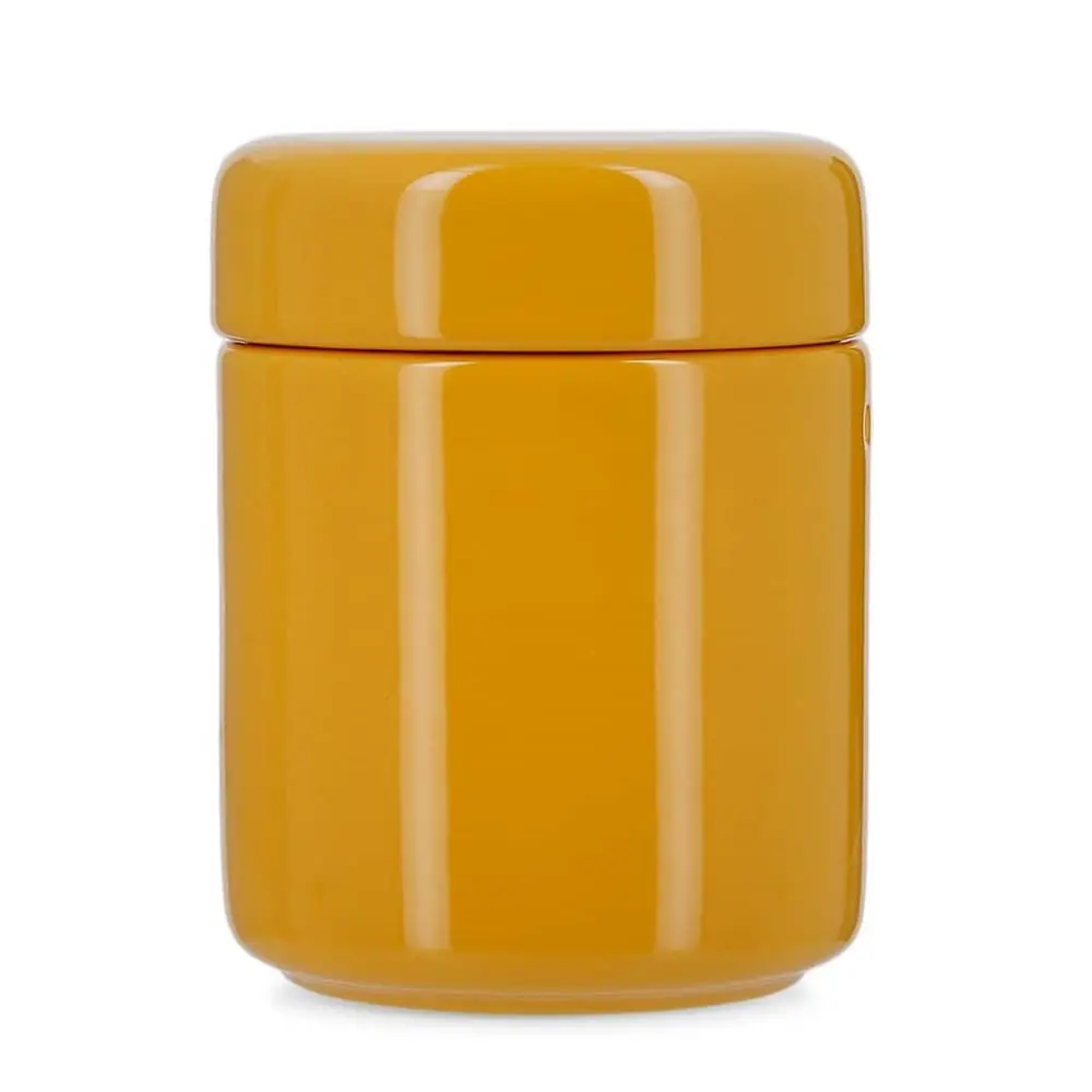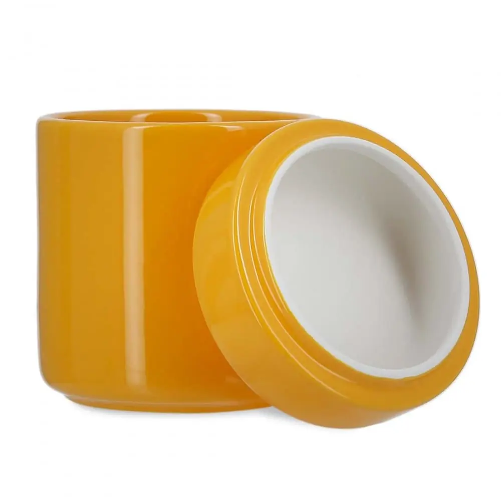 ceramic pot for tobacco.. yellow color.. . matter. ceramic. . colours. yellow. . form. cylindrical.