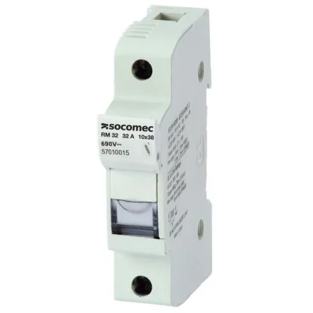 The Socomec 5703 series is the RM cylinder. fuse holder without sign. auxiliary contact. They provide safety disconnection and protection against overloads and short-circuits in any low voltage electrical circuit. This size of fuse required is the 22x58.Improved safety High breaking capacity Label holder