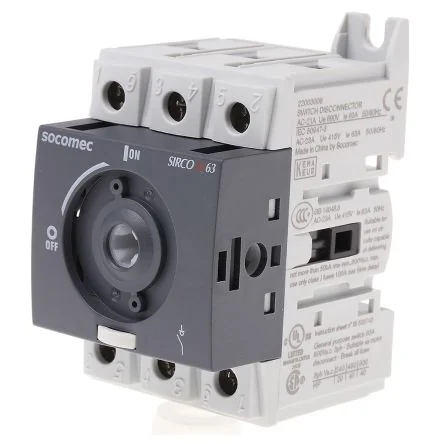 Ensure safe power isolation with the Socomec 3P Pole Isolator Switch, rated for 63A.