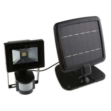 Bright, motion-activated solar floodlight for secure outdoor lighting without mains power.