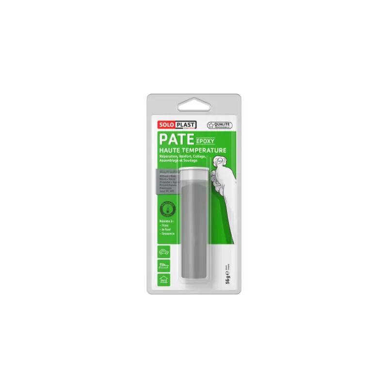 SOLOPLAST High Temperature Epoxy Putty 56g is a two-component epoxy filling and bonding system presented in a single product that can be used on all materials except polyethylene and polypropylene.