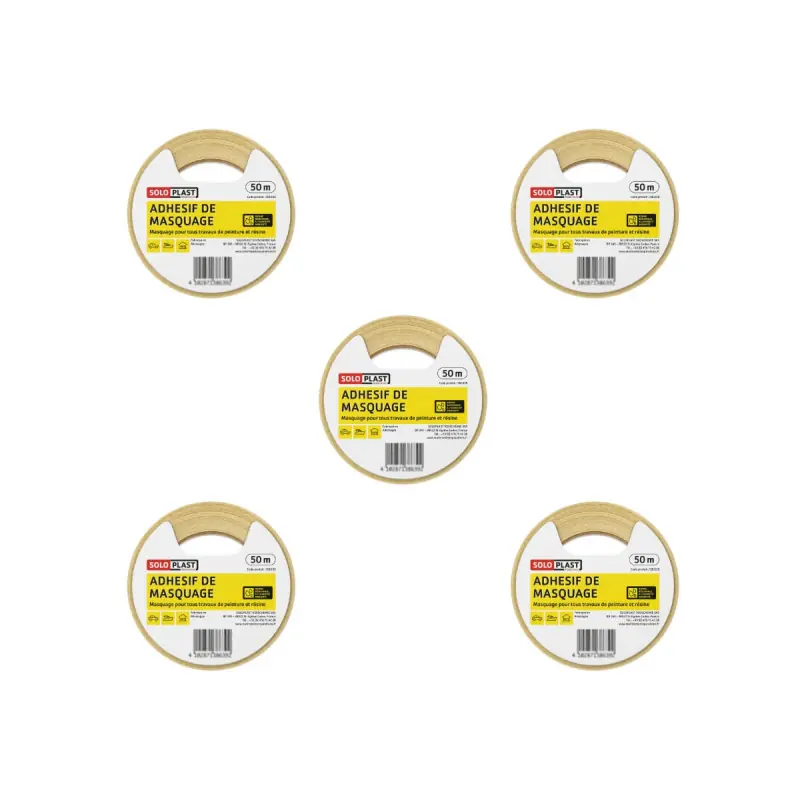 A pack of 5 Soloplast masking tapes 25mm x 50m