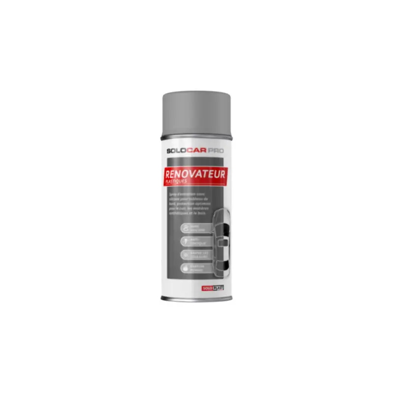 The Solocar Pro 400ml Plastic Renovator is a silicone-free dashboard maintenance spray. It provides optimal protection for leather, synthetic materials, and wood. This renovator revives colours and is anti-static. It will leave a delicate apple scent.