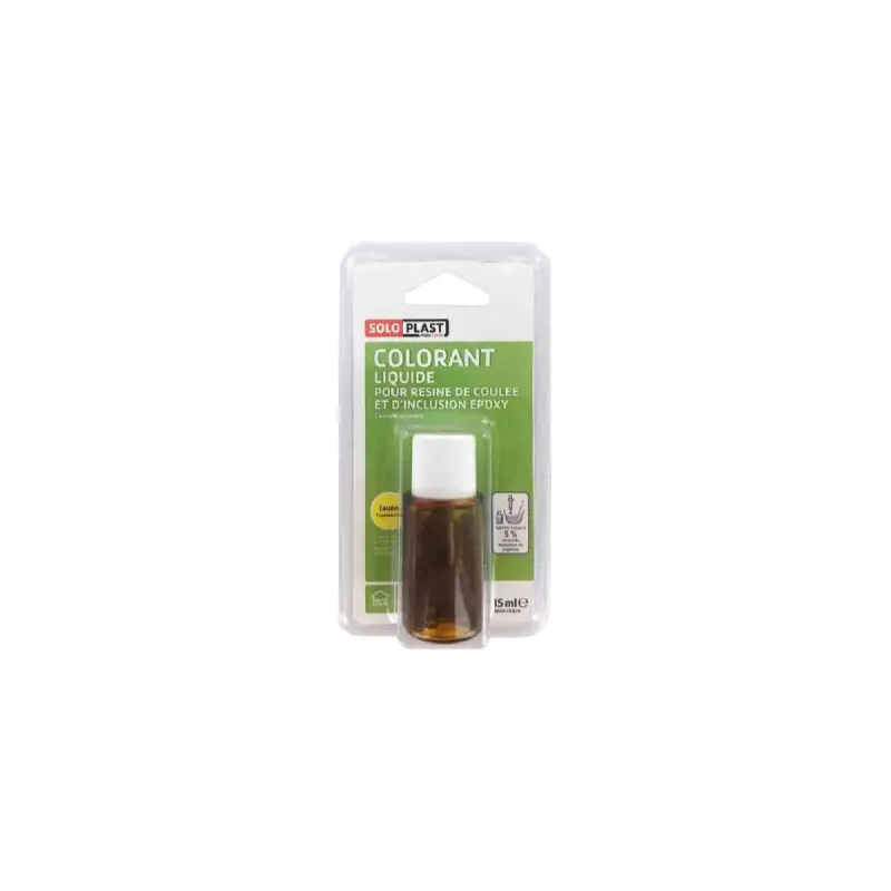 SOLOPLAST 15ml translucent yellow resin dye liquid dye to be mixed with epoxy casting and inclusion resin. Add a maximum of 5% by weight of dye to your resin to achieve the best result.
