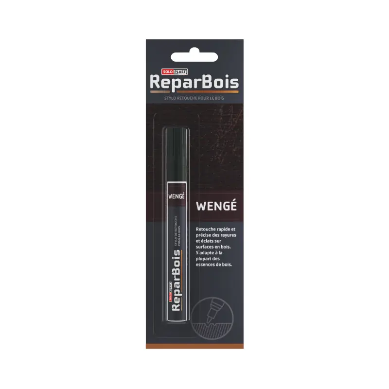 TheSOLOPLAST wood touch-up pen - Wenge - 4mlis suitable for making quick touch-ups on wood to eliminate imperfections on furniture, chairs, or other wooden elements.