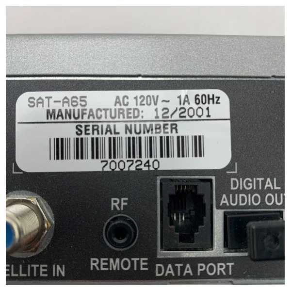 - Connections: satellite input, digital audio output, data port, and remote control connection