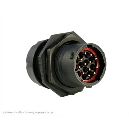 Reliable male plug circular connector with 12 contacts, designed for panel mounting and high protection ratings.